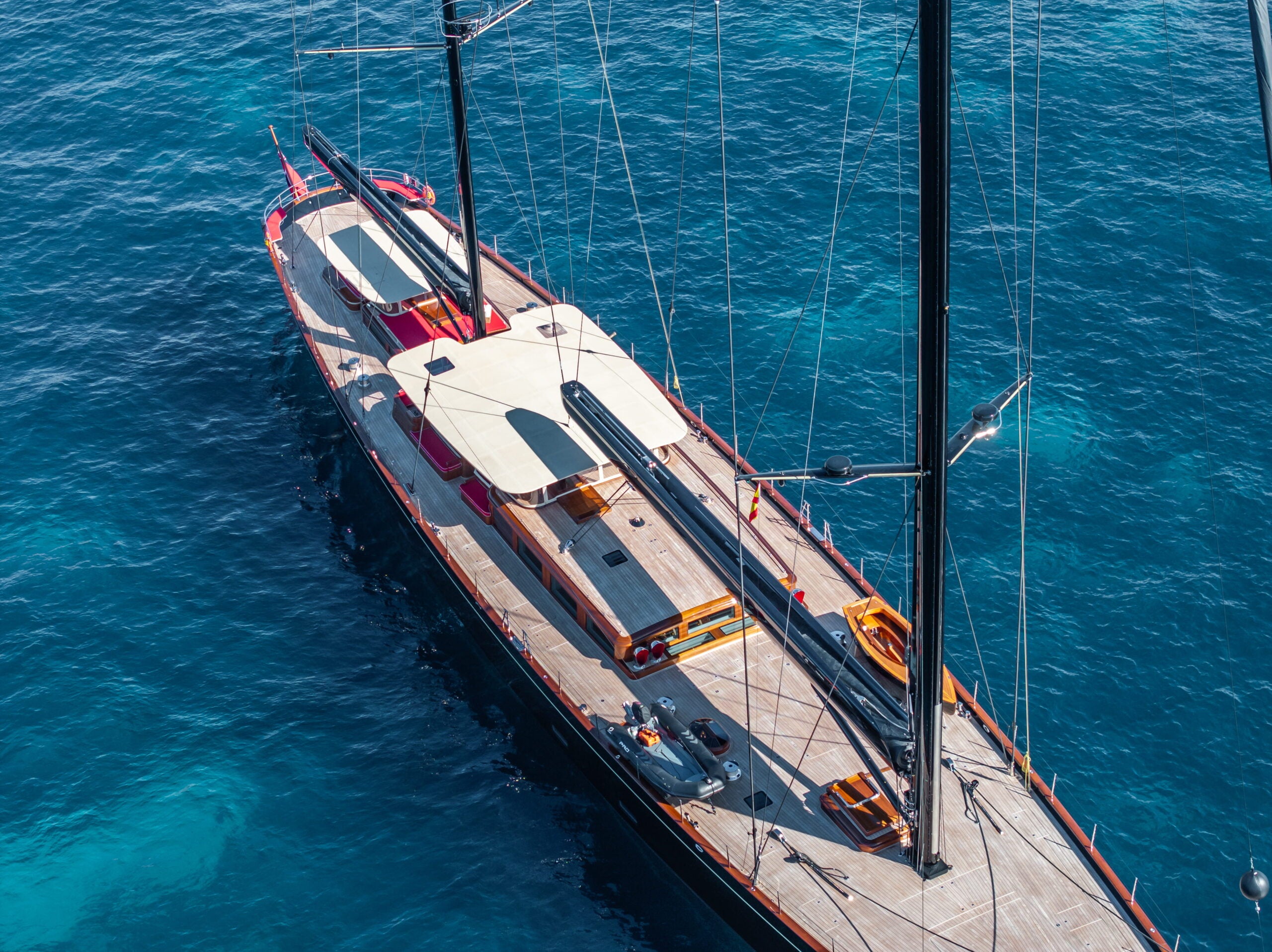 “Although you still have all the comfortable amenities of a motor yacht, you also have the adrenaline-fueled experience of hoisting the sails and gliding through the water without engine noise,” says broker Lotte Prentice.