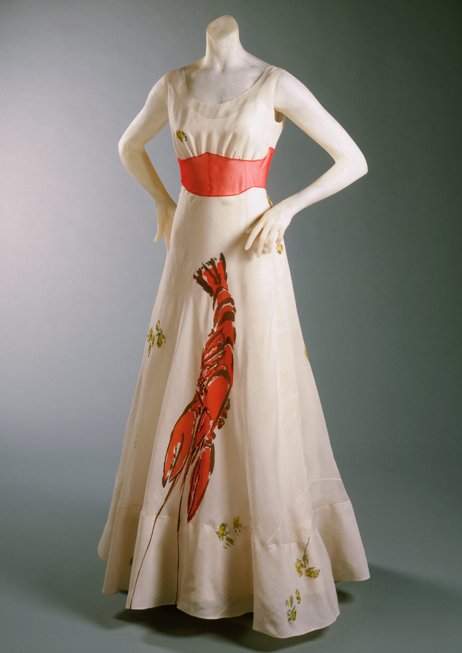 Lobster Dress by Elsa Schiaparelli, designed in collaboration with Salvador Dalí. Paris, Summer 1937. Silk organza © 2025 Salvador Dalí, Fundació Gala-Salvador Dalí, DACS. Photo: Philadelphia Museum of Art: Gift of Mme Elsa Schiaparelli, 1969-232-52