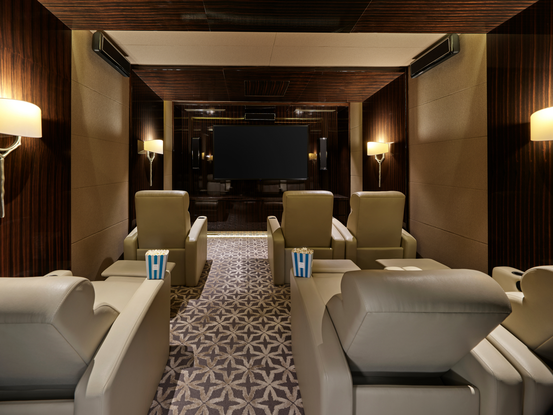 The list of amenities is comprehensive: living room, bedroom, private cinema, a kitchen, dining room, work area and an in-suite gym. Guests also receive a personalized mini-bar setup tailored to their preferences. The generous terrace offers breathtaking panoramic views of the Istanbul skyline, making it the perfect spot for morning coffee or evening cocktails.