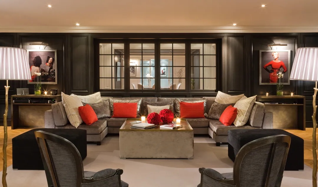 Structure-wise, the apartment is built for entertaining. It offers elegant lounges and a formal dining room centered around a grand table that comfortably seats fourteen guests. The two bedrooms are both impeccably styled and generously sized. Each en-suite features its own private lounge area, a dedicated working desk, and a substantial walk-in wardrobe—a practical necessity often overlooked.