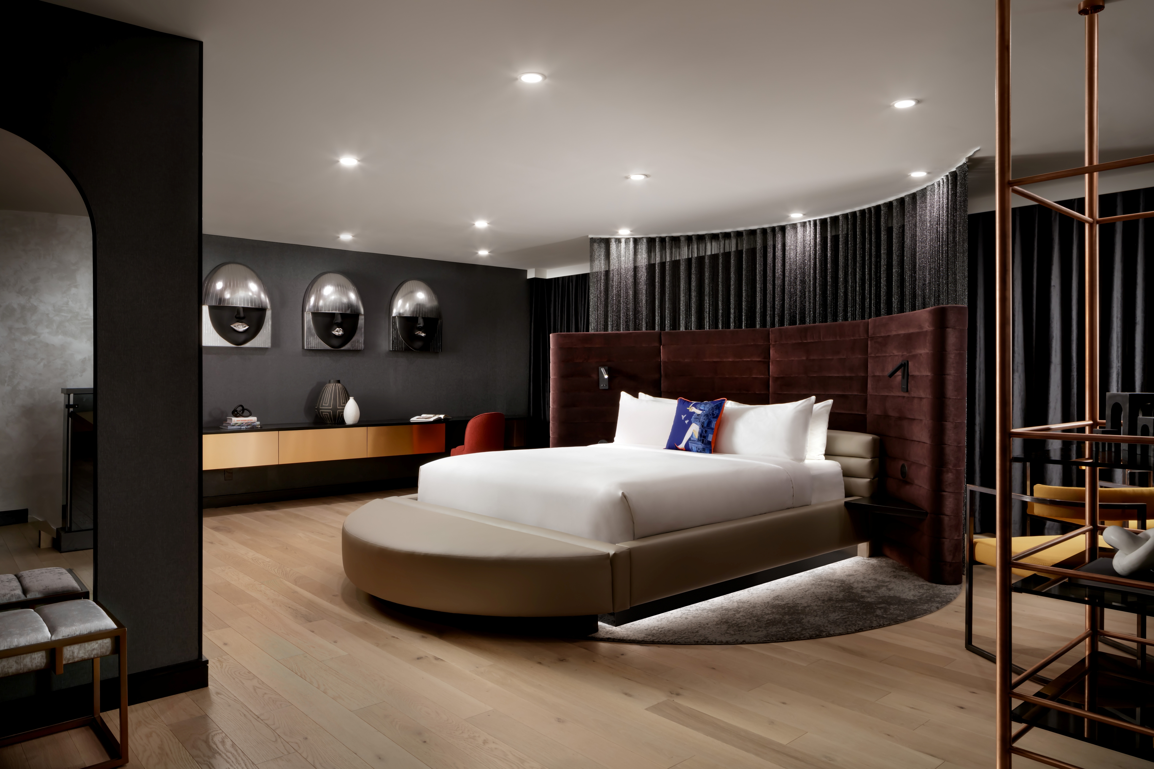 W Toronto brings a bold and eclectic energy to Yorkville with interiors that reflect the city’s vibrant arts and fashion scenes. The design is layered with rich colors, sculptural lighting and statement textures. Rooms are sleek and modern, offering skyline views and tech-forward features. Social spaces include a rooftop bar, a lounge with live music and a recording studio. With its creative flair and lively atmosphere, W Toronto redefines the luxury hotel experience for a younger, style-conscious traveler.