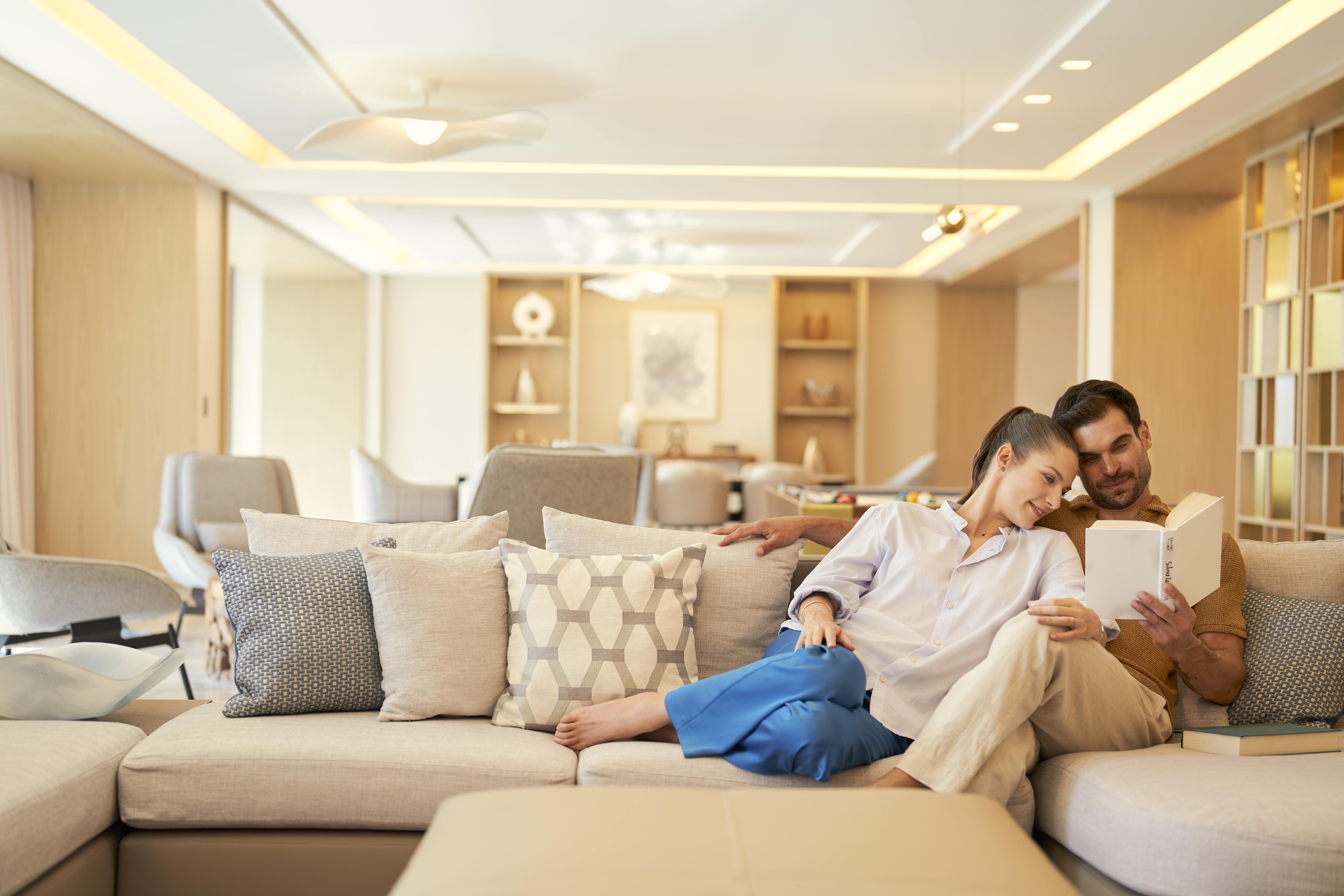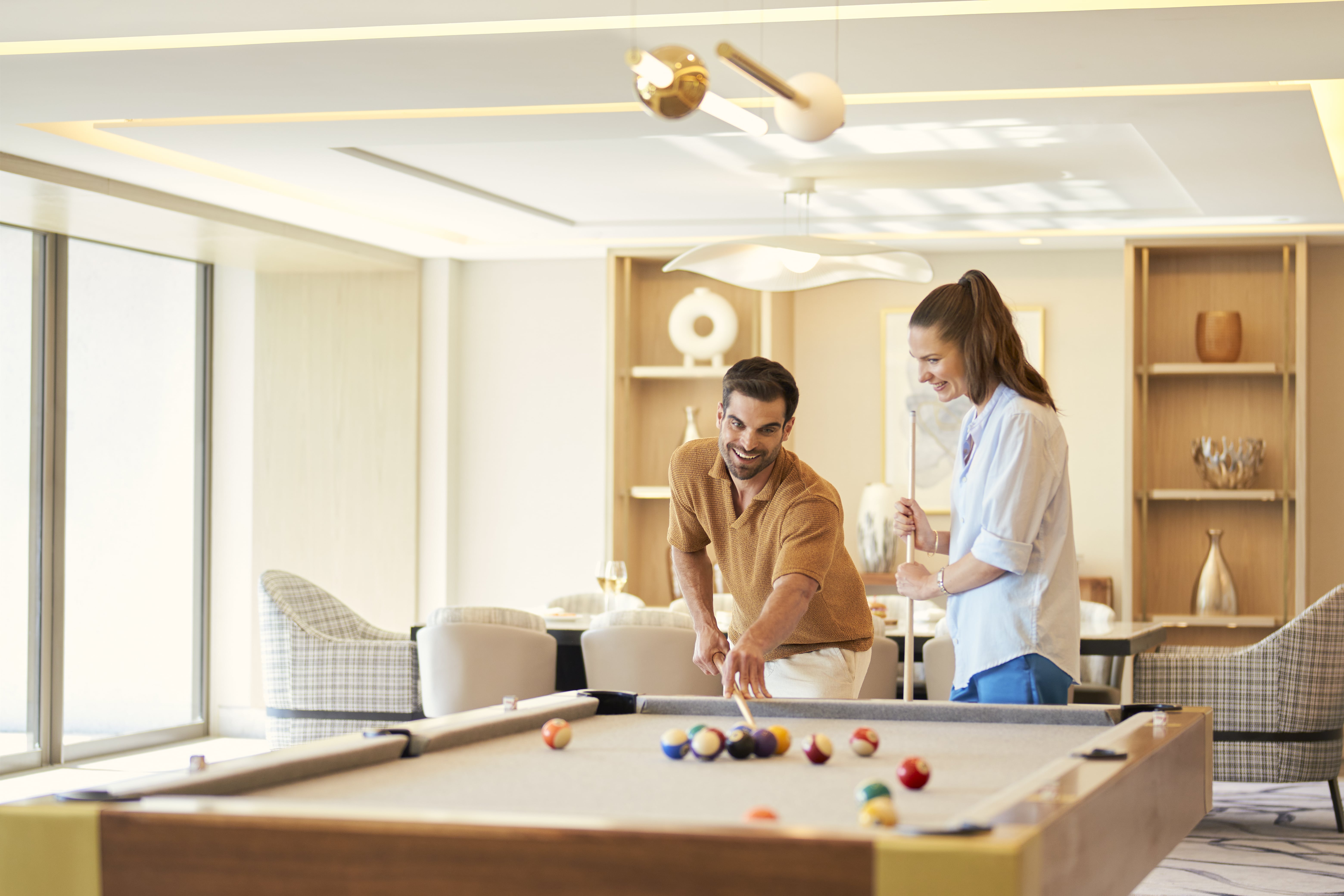 Ideal for entertaining, the luxurious suite boasts an expansive living area complete with a bar and dining table with space for up to 10 guests. Ensuring you have more space than you’ll know what to do with, there’s also a pool table and screening room for watching movies.