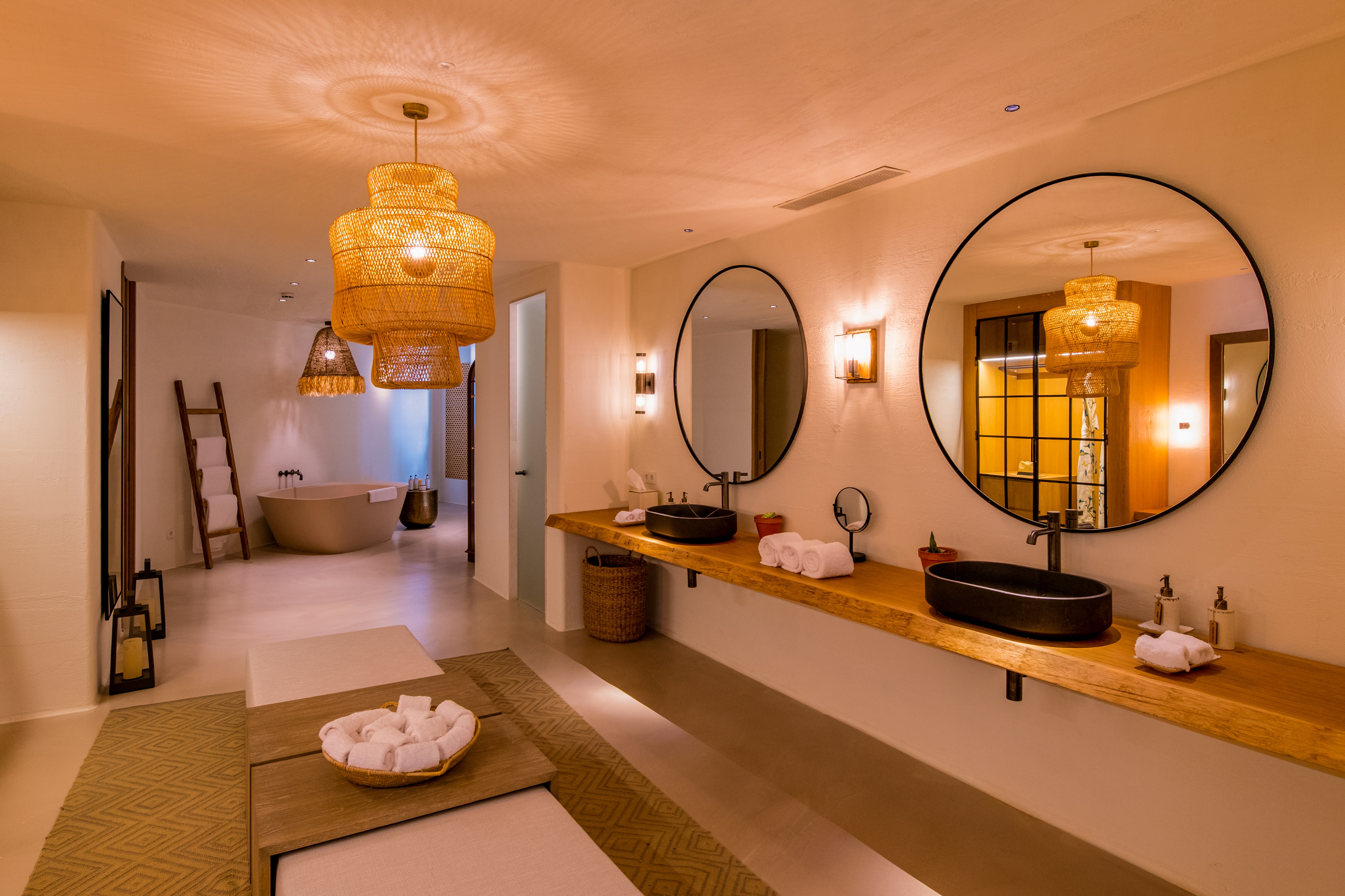 The Cave Royale captures the free-spirited, festival energy defining Ibiza, nodding directly to the island's bohemian music and art scene. Designed specifically for the creative traveler, the most distinctive feature is a hidden door that opens directly into a private recording studio—ready whenever inspiration strikes.