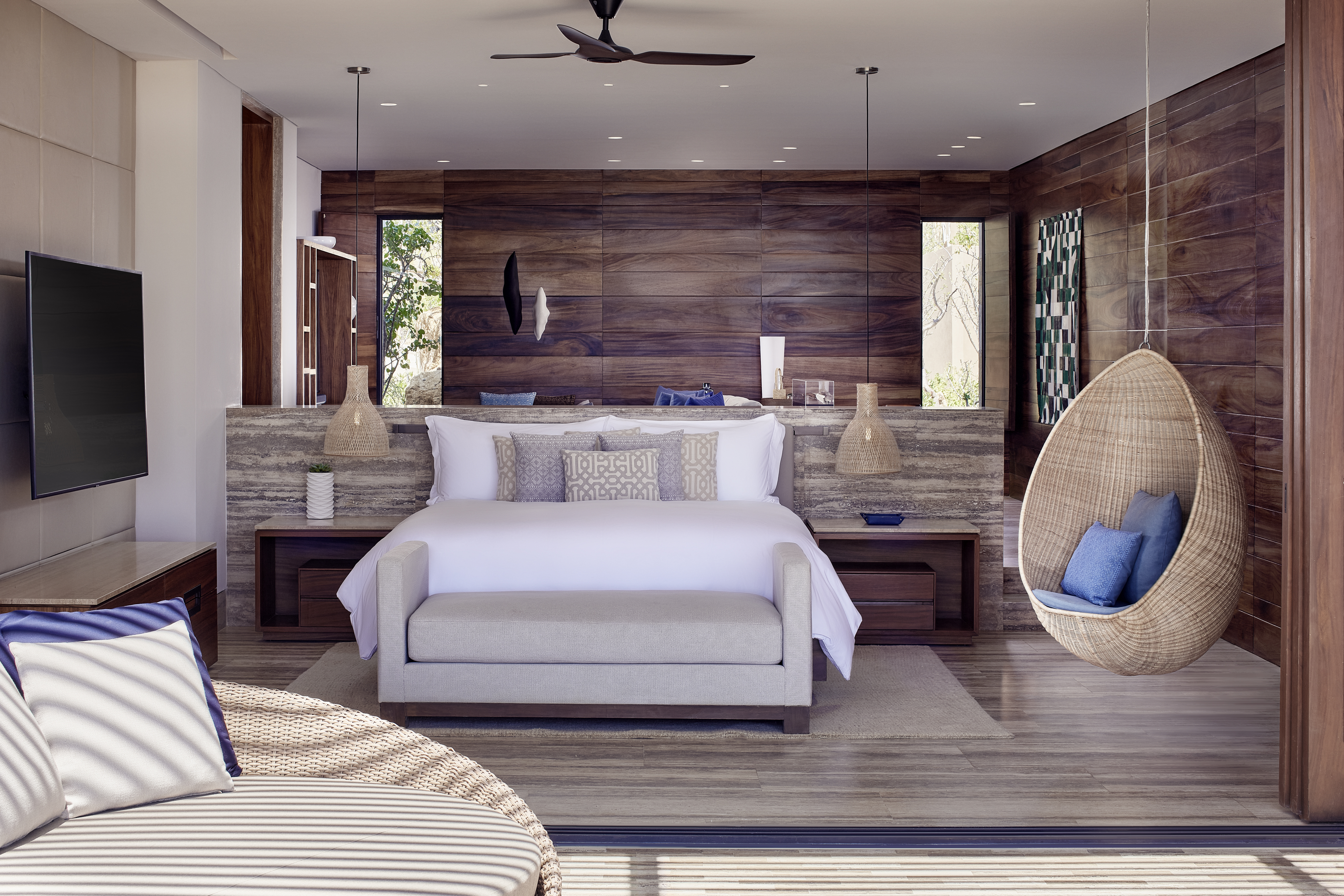This expansive five-bedroom residence offers a truly luxurious stay with direct oceanfront views, private pools, and a stunning terrace. The villa draws inspiration from traditional Mexican haciendas, celebrating the vibrant artistry of the region. Blending the comforts of a private home with the five-star standards of the resort, guests can unwind by the villa’s private terrace, which features a large pool, outdoor grill, firepit, and seating area. A thoughtful touch, the villa is fully equipped for a day at the beach, complete with a beach bag, hats, slippers, and sunscreen. To ensure your every need is met, the Grand Reserve Villa comes with a personal ‘Tosoanis’ (attendant) and a private chef who will craft gourmet meals just for you.