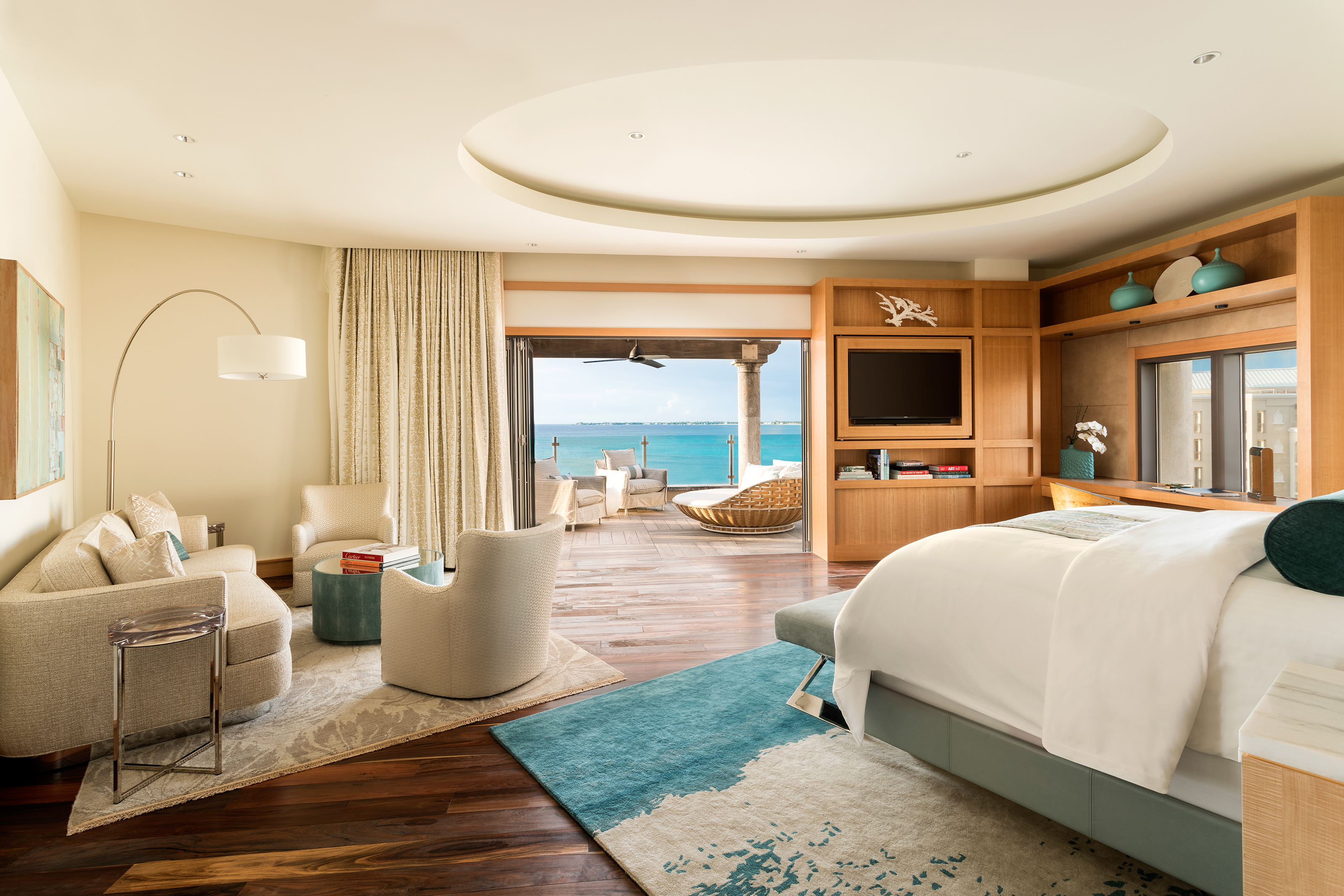 For grand gatherings, the suite can be combined with both adjoining two-bedroom suites, totaling nine bedrooms and almost 20,000 sq ft. This makes it the largest hotel accommodation in not just Grand Cayman, but the entire Caribbean.